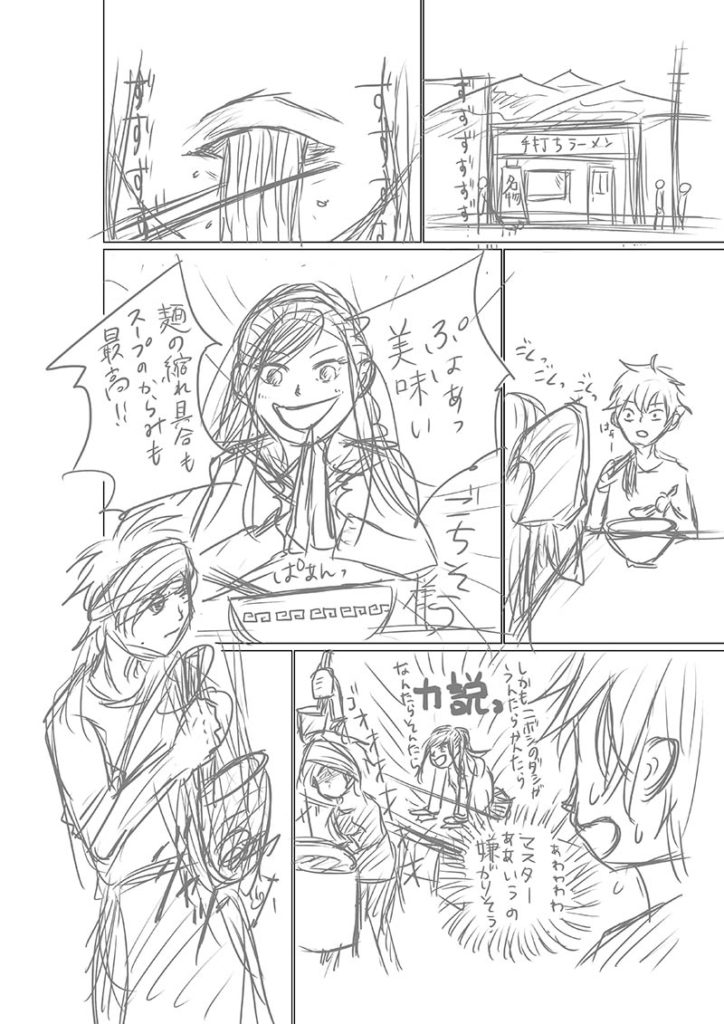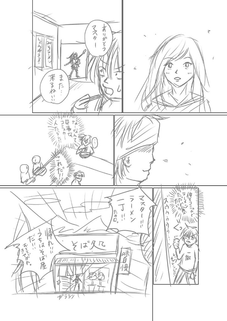 「コミュ力でラーメン食べたい」と男の子が言っているのですが、その後になぜかお蕎麦屋さんが出てきます。