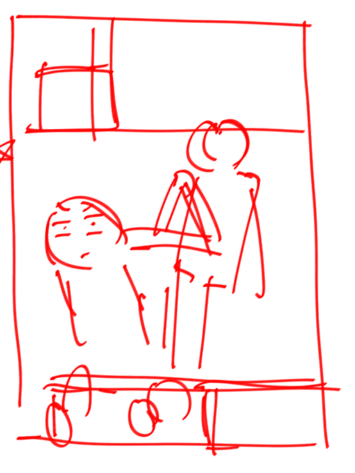 - 誰に話かけているか、位置関係がわかるアングルにしました(4コマ目)