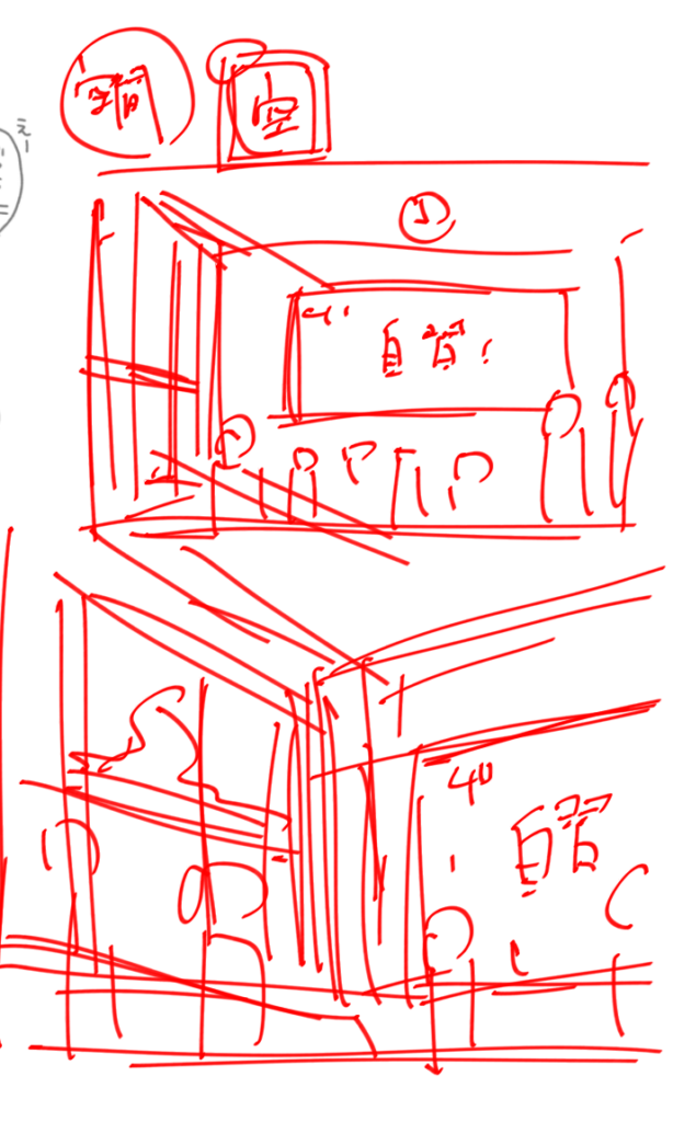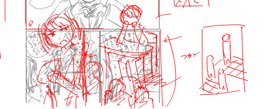 今回作ったネームの1P目には位置関係が入っていないんですね。