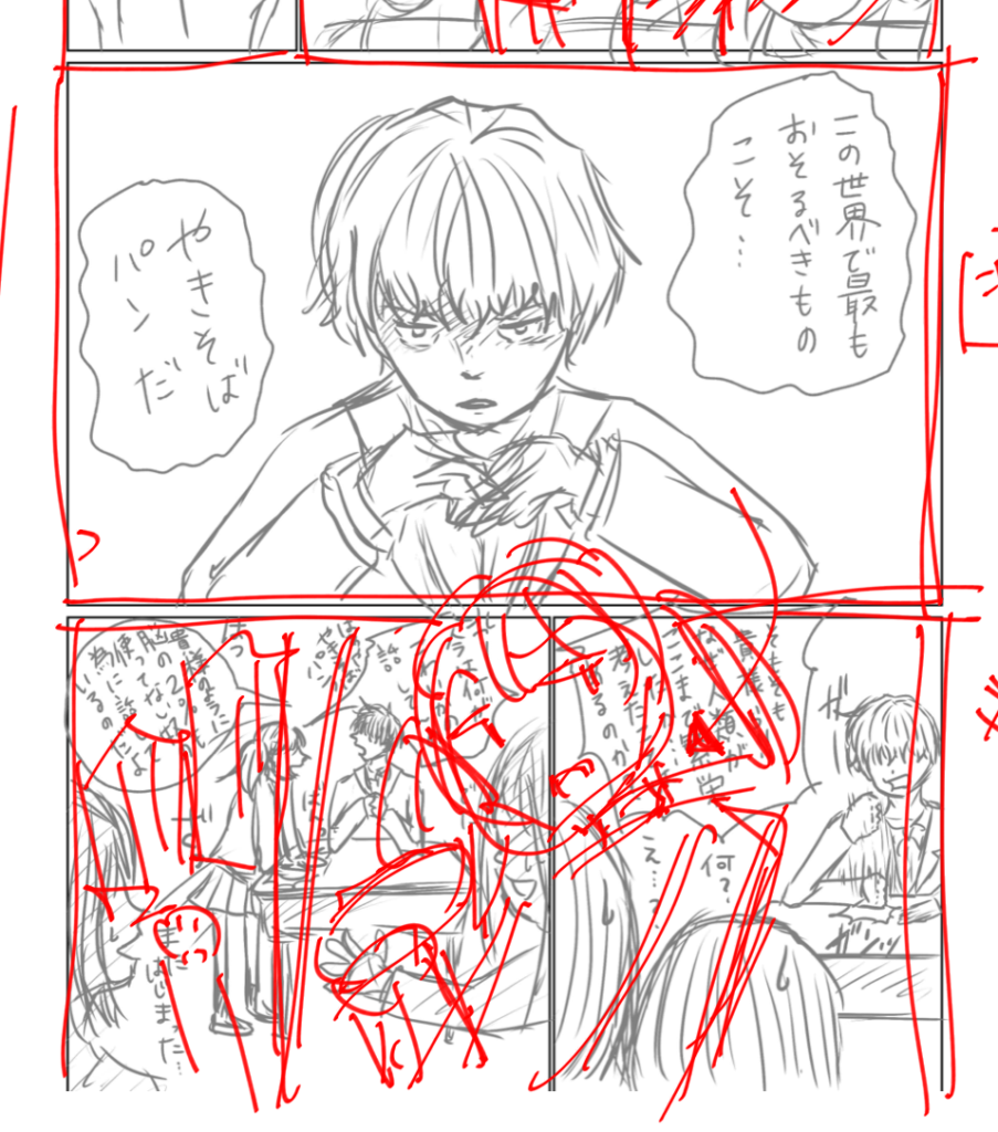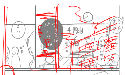 ネームなのでちゃんとした絵を描かなくていいし、ざっくり大きな視点で見てみてください。